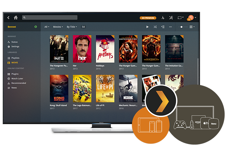 Установите Plex Media Server на D1 (Rev. B) и транслируйте хранящиеся медиафайлы на проигрыватели Roku®, Apple TV (через Qmedia), Google Chromecast ™, Amazon Fire TV®, смартфоны, планшеты и устройства DLNA®.