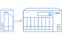 | Выполнив «горячую» замену дисков с меньшей на большую емкость, вы увеличите общий объем сетевого хранилища QNAP. | Вы можете подключить до двух модулей расширения RAID (TR-004 или TR-002) или один модуль USB 3.2 Gen 2 (TL-D800C) и управлять ими через веб-интерфейс сетевого накопителя. | Перенесите жесткие диски из старого NAS в более крупное или новое сетевое хранилище QNAP с сохранением всех существующие данных и конфигураций. |