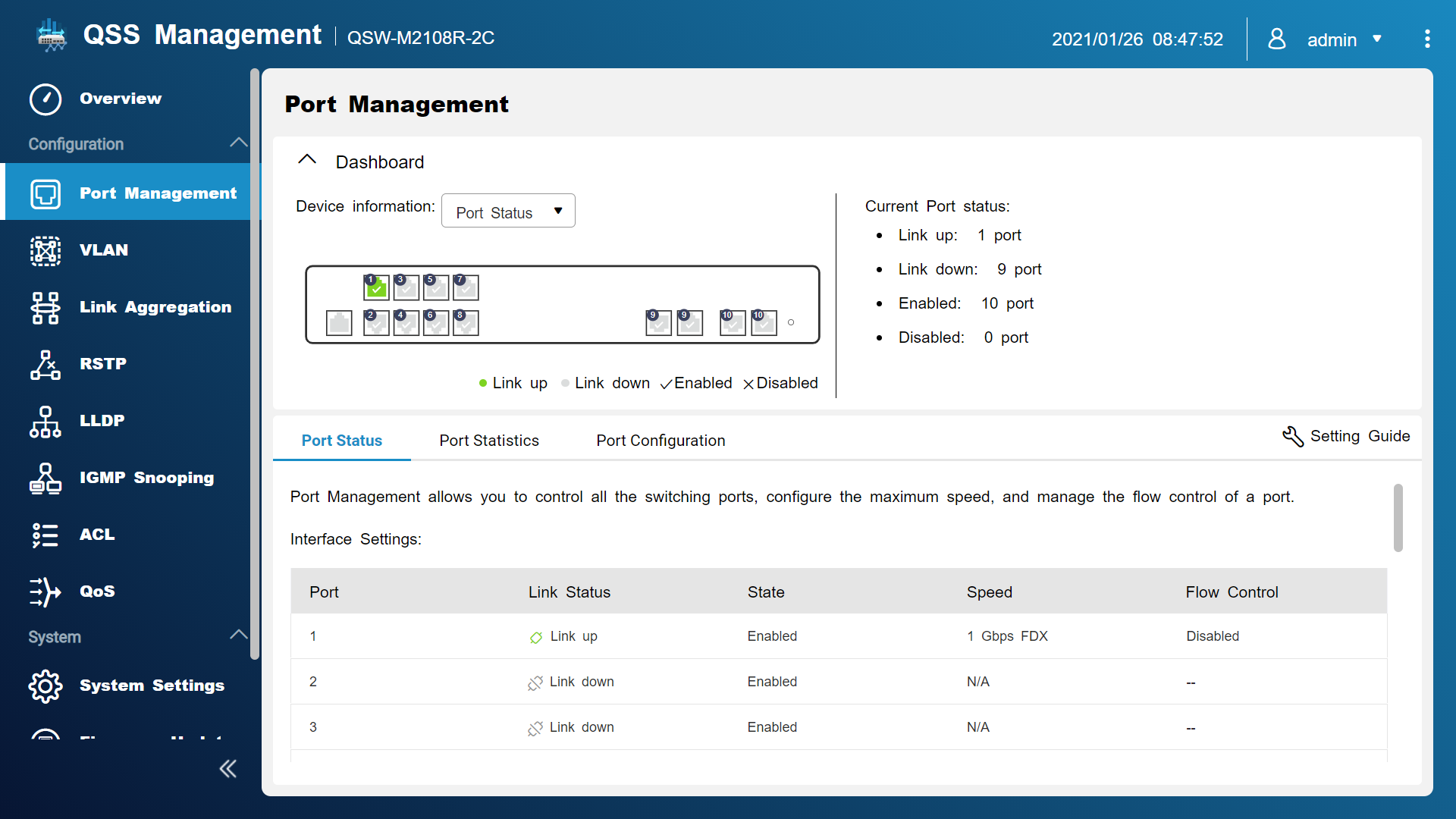 Система управления коммутаторов QNAP (QSS) имеет удобный веб-интерфейс с дополнительными функциями, упрощающими настройку и управление сетью.