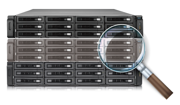 QTS Storage Manager предлагает ряд полезных инструментов и опций для управления системным хранилищем с помощью интуитивно понятного графического интерфейса пользователя, который упрощает процесс увеличения емкости NAS и управления модулями REXP-1220U-RP. Администраторы ИТ могут с легкостью отслеживать состояние модуля REXP-1220U-RP и установленных в нем дисков. При каскадном соединении нескольких модулей расширения в стойке администраторы ИТ могут быстро найти нужный модуль или нужный диск с помощью функций Locate Disk (Найти диск) и Locate Enclosure (Найти модуль).