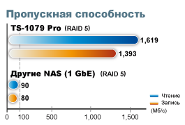 Устройство QNAP TS-1079 Pro предлагает самые гибкие, высокопроизводительные и масштабируемые решения для организации систем хранения данных. Благодаря возможности увеличения числа портов до 4 и опциональной карте 10 GbE для увеличения пропускной способности система NAS значительно ускоряет процесс передачи данных и повышает производительность работы. Мощный процессор Intel позволяет обслуживать одновременно множество пользователей и обеспечивает доступ к данным с минимальной задержкой.