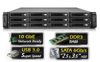 Сетевой RAID-накопитель, 12 отсеков для HDD, стоечное исполнение, два блока питания. Intel Core i3-2120 3,3 ГГц, 4 ГБ. Направляющие в комплект поставки не входят.