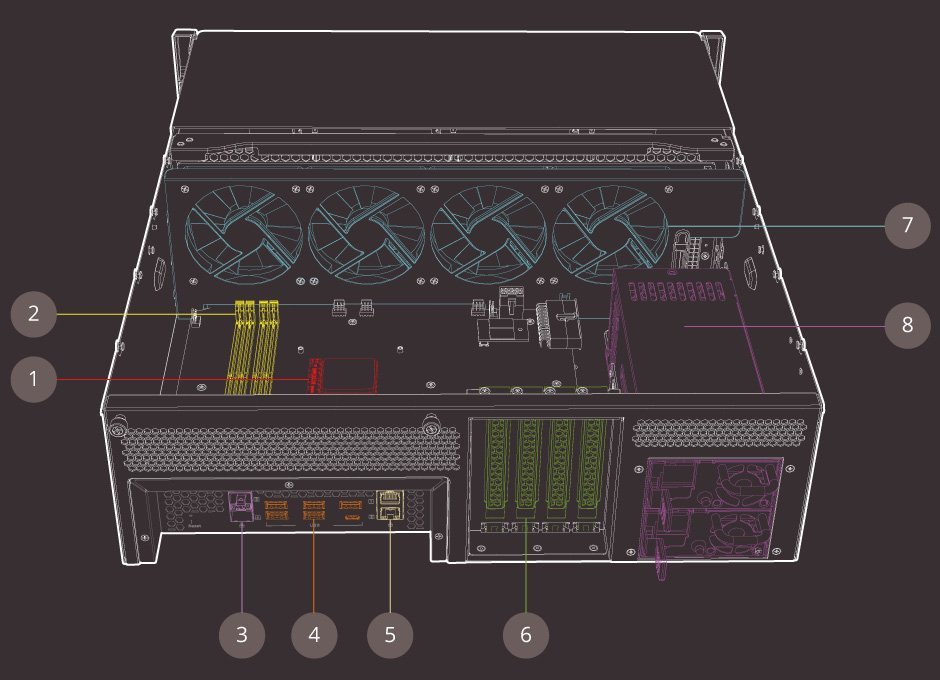 | Встроенный сетевой адаптер 10 Гбит/с RJ45 для расширения полосы пропускания для виртуализации, редактирования видео высокого разрешения и совместного использования. | 3 слота PCIe поддерживают карты QM2, адаптеры 10 Гбит / 40 Гбит или беспроводные сетевые карты, что позволит расширить возможности системы. | Обеспечена поддержка графических карт на базе NVIDIA и Radeon. А поддержка GPU- passthrough позволяет использовать вычислительные мощности видеокарт для обработки видео из виртуальных сред. |