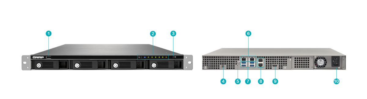 Сетевой RAID-накопитель, 4 отсека для HDD, стоечное исполнение, 1 блок питания. Intel Celeron J1900 2,0 ГГц, 4 ГБ. Направляющие в комплект поставки не входят.