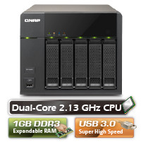 Turbo NAS TS-569L оснащен USB-портами, что позволяет подключить несколько внешних накопителей для резервного копирования данных или увеличения емкости дискового пространства хранилища.