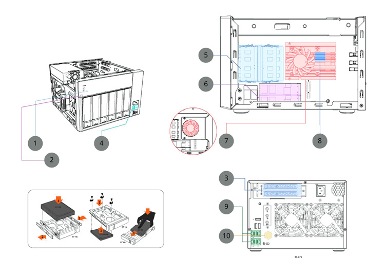 Высокая надёжность комплектующих сетевого накопителя TS-673 гарантирует заявленную производительность аппаратной платформы, а в сочетании с гибкой и расширяемой архитектурой, данная модель станет незаменимой в решении любых бизнес задач.