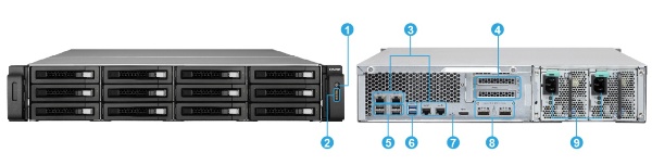 | 2. | Индикаторы: 10GbE, статус, сеть, слот расширения | 7. | Кнопка сброса |