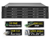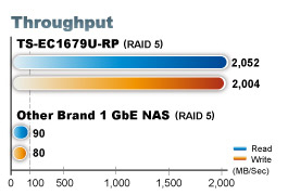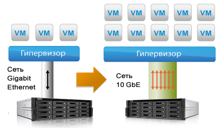 На сегодняшний день все более широкое распространение приобретает виртуализация IT- ресурсов, которая предъявляет высокие требования к производительности системы хранения данных. Сетевой накопитель TS-EC1679U-RP построен на базе лучшей в своем классе аппаратной платформе с поддержкой интерфейса 10 GbE и удовлетворяет потребностям серверной виртуализации (VMware , Citrix и Windows Hyper-V) в высокоскоростной передаче и обработке данных. Подключение сетевого накопителя к виртуальным средам осуществляется по протоколам iSCSI и NFS.