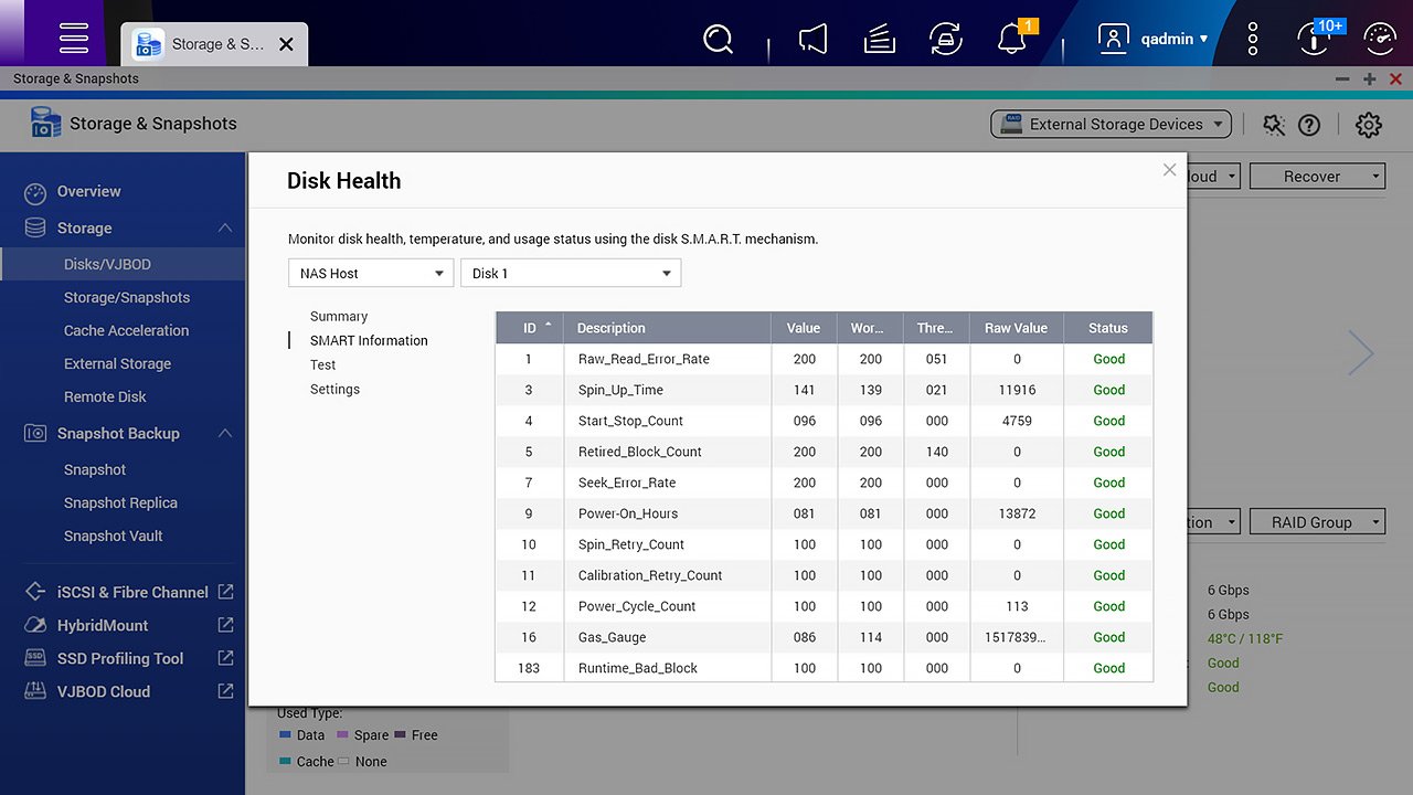 Почти неограниченное число мгновенных снимков томов и LUN, а также виртуальных машин для создания множества точек восстановления отдельных файлов и папок. Функция Snapshot Replica упрощает защиту данных на нескольких NAS, а утилита репликации SnapSync выполняет аварийное восстановление корпоративного класса.