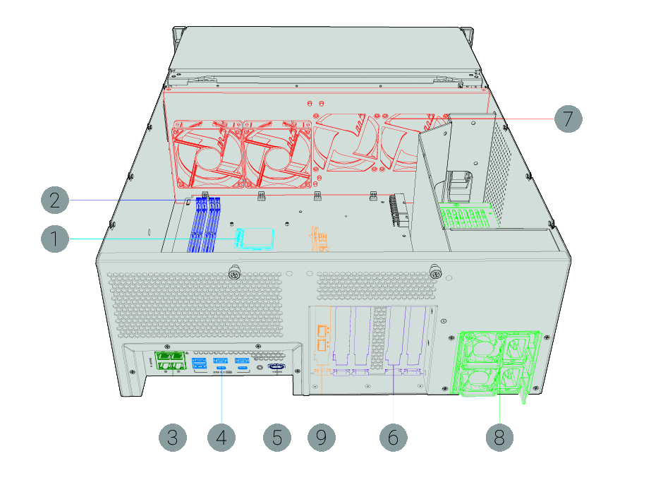 7. Блок вентиляторов, для охлаждения системы с интеллектуальным управлением охлаждением;