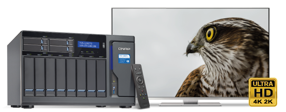 Модель TVS-882BR имеет на борту два 4K HDMI выхода и поддерживает режимы дублирования и расширения экранов. К устройству можно подключить телевизор, монитор или A/V-ресивер и с помощью сервиса HD Station просматривать видео, слушать музыку и онлайн-радиостанции, а также просто серфить в сети Интернет. Для управления приложениями HD Station устройство комплектуется инфракрасным пультом управления с функцией обучения, что позволяет легко запрограммировать часто используемые кнопки пульта телевизора и стерео системы. Обладатели Android и iOS смартфонов могут также осуществлять управление через мобильное приложение Qremote.