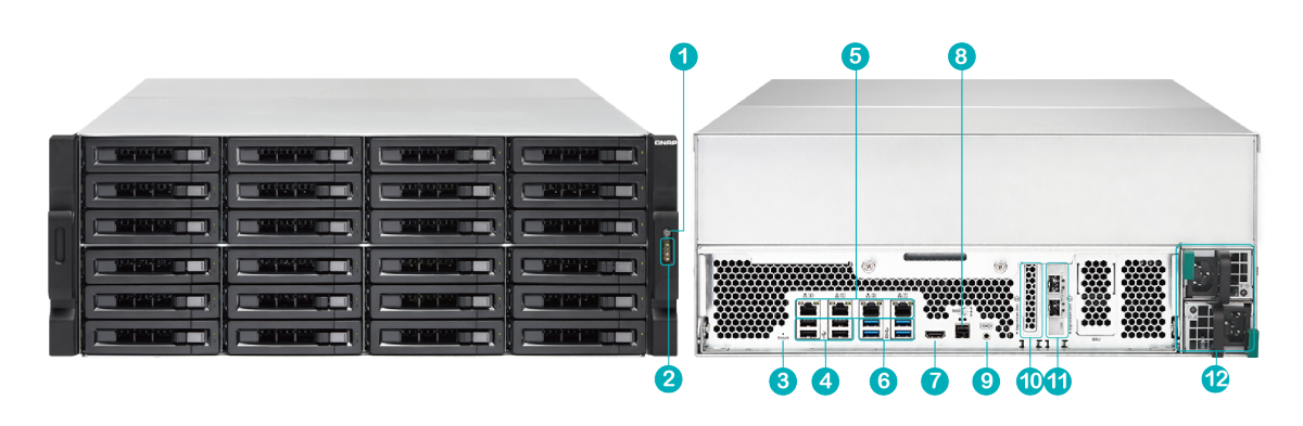 Накопитель TVS-EC2480U-SAS-RP R2 оснащен четырьмя портами Gigabit Ethernet и поддерживает установку сетевого адаптера 10GbE. Также можно использовать 10/40/56 GbE адаптеры Mellanox ConnectX-3 Pro для обеспечения наиболее экономически эффективных вычислений. В результате достигается высокая пропускная способность сети для приложений, требовательных к операциям ввода/вывода и виртуальных машин.