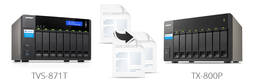 Модуль расширения QNAP TX-800P используется как недорогое и быстрое хранилище, куда можно скидывать резервные копии важных данных с головного устройства Turbo NAS. Администратор настраивает выполнение бэкапов данных в режиме реального времени или по расписанию.