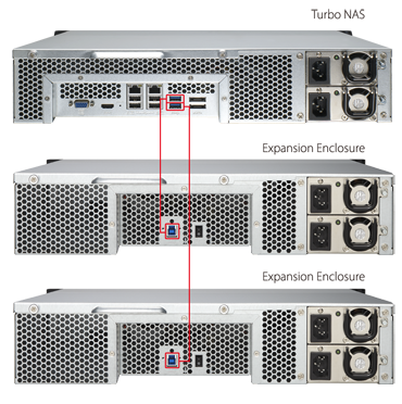 Просто подключите UX-800U-RP к сетевому накопителю Turbo NAS и электропитанию. Система Turbo NAS автоматически распознает жесткие диски, установленные в модуле расширения, как новые внутренние. Все дальнейшие операции с ними, такие как объединение в RAID-массивы и логические тома, доступны в Менеджере хранения операционной системы QTS.