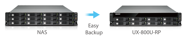 Модуль расширения QNAP UX-800U-RP используется как недорогое и быстрое хранилище, куда можно скидывать резервные копии важных данных с головного устройства Turbo NAS. Администратор настраивает  выполнение бэкапов данных в режиме реального времени или по расписанию.